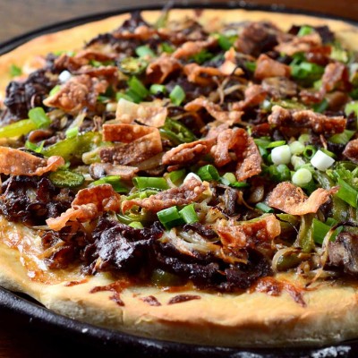 tomato sauce, Mozzarella, spicy sausage, onions and BBQ sauce