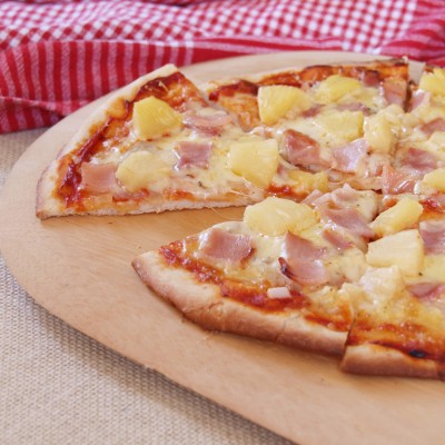 Tomato sauce, Mozzarella, cooked ham and pineapple