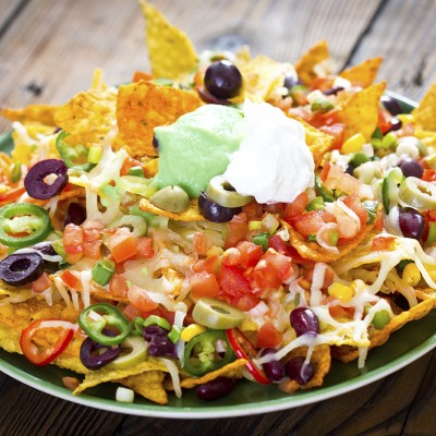 Con jalapeños, guacamole, pico gallo, nata agria y salsa mexicana